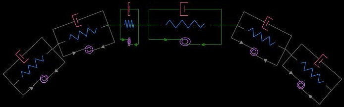 Each discrete segment comprises three elements arranged in parallel: an active contractor, a "creepy spring", and a dashpot. The active contractor generates an insatiable contractile force, mimicking the behavior of myosin. The creepy spring acts in two ways to correspond to a crosslinked actin meshwork: brief application of force yields a simple elastic recoil, just as a Hookean spring would, whereas long-term application of force causes permanent deformation (or creep).